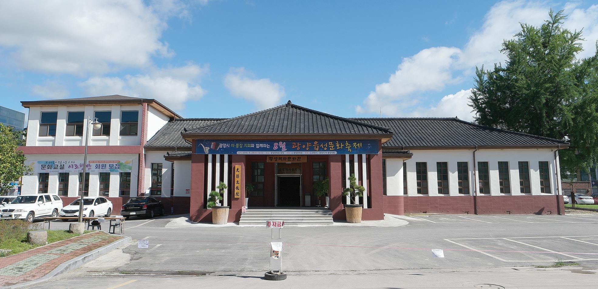 먼저 광양역사문화관(등록문화유산 제444호)은 1943년 건립된 옛 광양군청사를 재생한 공간으로, 한국전쟁 당시 화재를 겪은 뒤 개보수를 거쳐 1968년 2층을 증축했다.