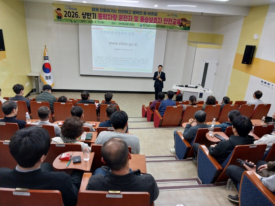 전라남도보성교육지원청(교육장 김호범)은 3월 31일 3보향교육이음터에서 관내 유·초·중학교, 학원, 지역아동센터 통학차량 운전자 및 동승보호자 70여명을 대상으로 통학차량 안전교육을 실시하였다.