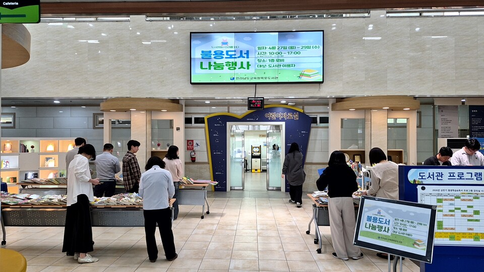 전라남도교육청목포도서관은 매년도 발생하는 불용 도서에 대해 도서 자원의 재활용과 지역 사회의 문화 향상에 기여하고자 “도서 나눔 행사”를 4월 27일부터 29일까지 총3일간 본관 1층 도서관 로비에서 개최하였다.