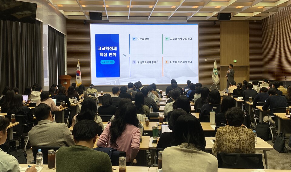 연수 내용은 ▲ 대입제도 변화 이해 ▲ 담임교사의 진학지도 역할 ▲ 수행평가 중심 학생평가와 대입 반영 ▲ 서류평가 기반 대입 경쟁력 강화 방안 등으로 구성되어, 조기 진로 설계 역량 강화에 초점을 맞췄다.