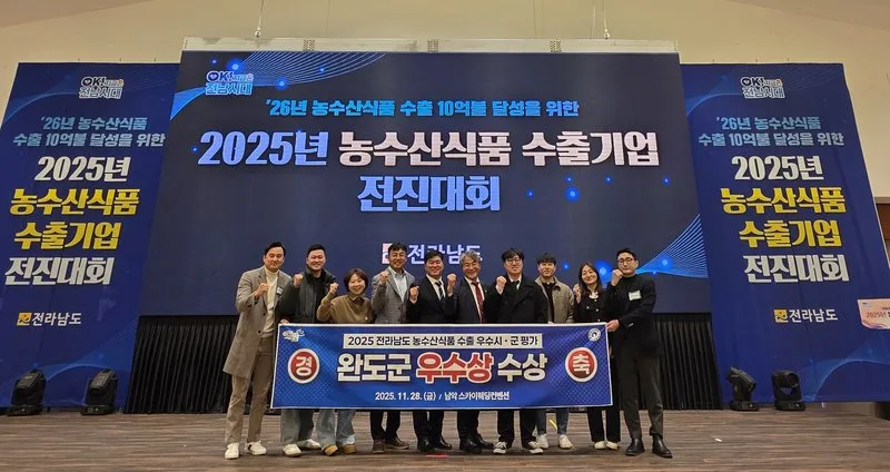 Wando County, Jeollanam-do, Receives the Excellence Award in Jeonnam Agricultural, Fisheries, and Food Export Evaluation Wando County, in Jeollanam-do, recently received the Excellence Award in the "2025 Jeonnam Agricultural, Fisheries, and Food Export Outstanding County Evaluation" held on November 28 in Muan County, Jeollanam-do. This evaluation was conducted among 22 counties since October last year until September this year, based on agricultural, fisheries, and food export performance and export increase rate. The evaluation process consisted of a first-round quantitative evaluation followed by a second-round qualitative evaluation of key export support policies and efforts in opening overseas markets. Wando County was highly appreciated for its active efforts in opening overseas markets. Since 2016, Wando County has been operating a trade promotion center, and this year, it has hosted seven overseas promotional exhibitions and two export consultation meetings, as well as participated in three international food fairs to promote the excellence of Wando's seafood products. On the same day, the "Jeonnam Agricultural, Livestock, and Fisheries Products Export Tower Award Ceremony" was held, where Wando County's export companies, such as ㈜Bada Myeongga (50 million dollars), Haemi One Cooperative Corporation (10 million dollars), ㈜Pureun Jungshik Food (5 million dollars), and Wando Sea Cooperative Corporation (2 million dollars), received export towers for their contributions to the region's seafood exports. The representative of (Yu) Daehan Materials, Jeong Dae-han, also received a Jeollanam-do Export Merit Award. Wando County Governor Shin Woo-cheol said, "Thanks to the efforts of the county and export companies, Wando's seafood products have gained global attention." He further stated, "In May next year, we will invite buyers from countries around the world to the International Seaweed Expo and hold export consultation meetings to broaden the export path for Wando's specialty products."