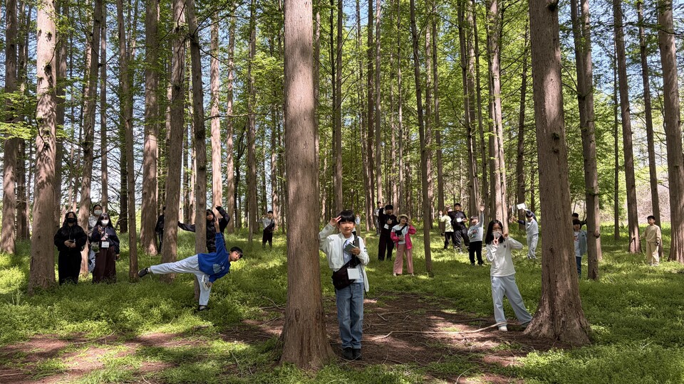 나무를 만지고, 소리를 듣고, 냄새를 맡으며 오감을 열었다.