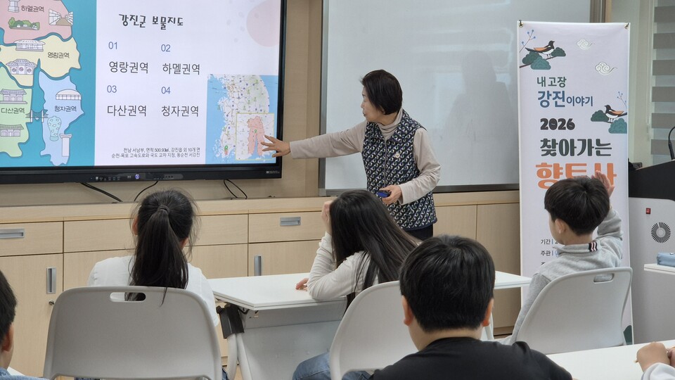 계산초등학교(교장 허진)는 4월 13일 교내 자치회의실에서 3·4학년을 대상으로 2, 3교시에 ‘찾아가는 향토사 교육’을 열고, 학생들이 강진의 역사와 문화유산을 쉽고 흥미롭게 익히는 배움의 시간을 운영했다.