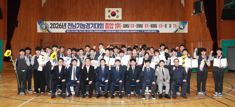 여수공업고등학교(교장 김대원)는 4월 6일부터 4월 10일까지 전남 일원(여수‧순천‧나주‧해남‧화순)에서 개최된‘2026 전남기능경기대회’에서 종합 1위를 차지하며 기술 인재 양성의 우수성을 입증했다.