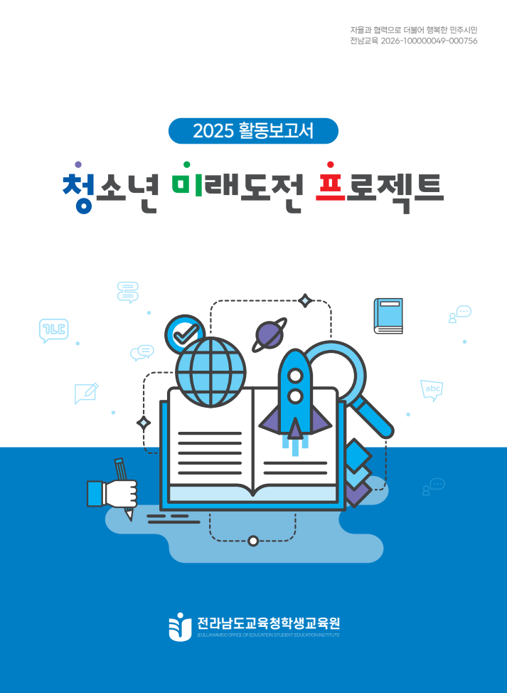 전라남도교육청학생교육원(원장 김창근)은 2025년 한 해 동안 운영한 ‘청소년미래도전프로젝트’의 성과를 담은 『청소년미래도전프로젝트 2025 활동보고서』를 발간했다고 밝혔다. ‘청소년미래도전프로젝트’는 학생들이 스스로 미래를 설계하고 도전 과제를 수행하며 자기주도성과 창의적 문제해결력을 기를 수 있도록 지원하는 프로그램이다.