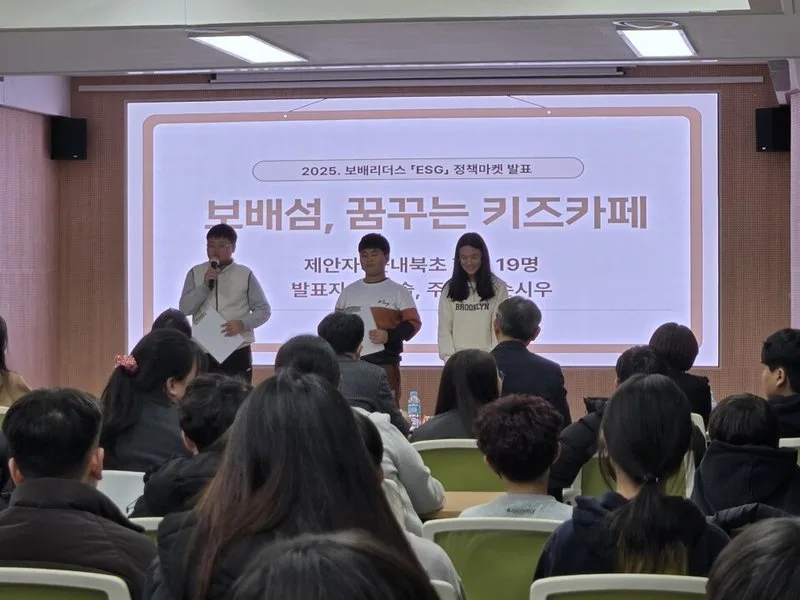 'ESG 정책마켓'은 환경(E), 사회(S), 구조(G) 영역에서 학생들이 직접 지역사회와 학교의 문제를 살펴보고 정책을 제안하며, 함께 해결 방법을 고민하는 발표의 장이다.