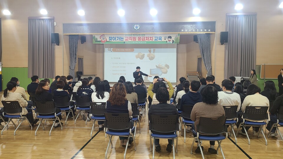 전라남도교육청백운학생수련장(소장 문은숙)은 3월 17일 광양중동초등학교 교직원을 시작으로 ‘2026년 찾아가는 교직원 응급처치 교육’의 본격적인 운영에 나섰다.