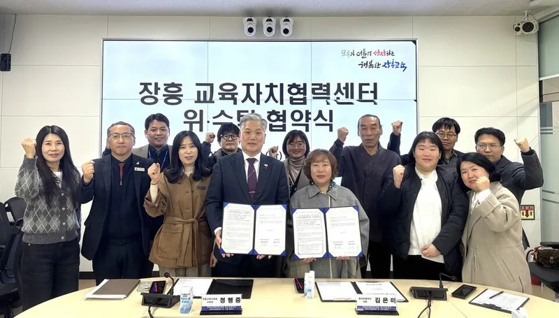 전라남도 장흥교육지원청(교육장 정행중)은 12월 30일(화) 장흥교육지원청에서 용산마을학교와 ‘2026 장흥교육자치협력센터 위·수탁 협약식’을 체결하고 지역 기반 교육자치 실현을 위한 협력 운영에 나섰다.