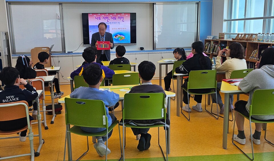 이날 프로그램은 ‘어린이는 모두 시인이다’라는 주제로 진행되었으며, 동시집 『꿈꾸는 베개왕자』의 저자인 정병도 작가가 직접 학교를 방문해 학생들과 뜻깊은 만남의 시간을 가졌다.