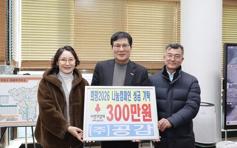 함평군 ㈜공감이 함평군에 ‘희망 2026 나눔 캠페인’ 성금 300만 원을 기탁했다고 함평군이 8일 밝혔다.