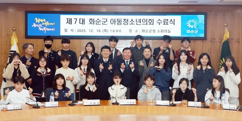 이호범 부군수는 “화순군 6,300여 명의 아동을 대표해 2025년 제7대 아동․청소년의회 모든 회기과정 수료를 축하드린다.