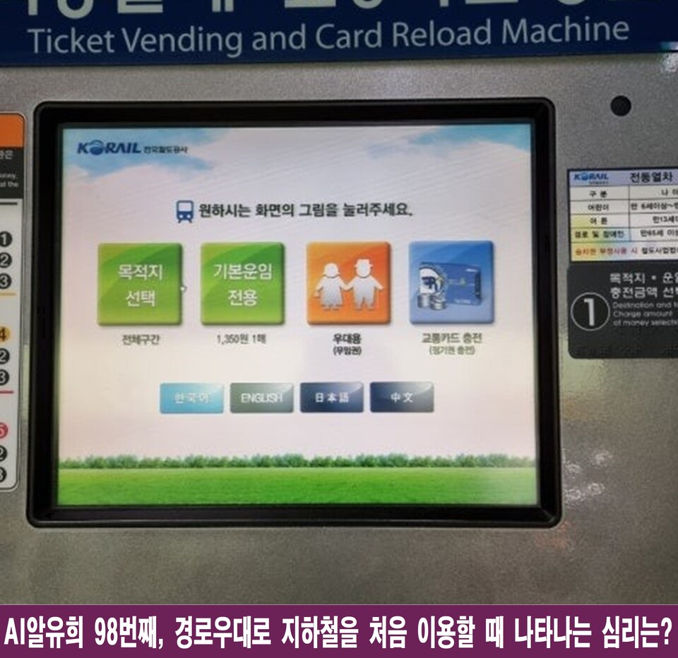 AI알유희 98번째, 서울 지하철을 경로우대로 처음 이용할 때 나타나는 심리를 모두 찾아내시오.