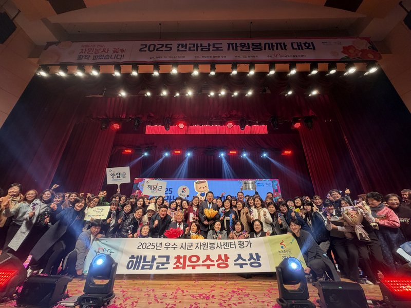 해남군자원봉사센터는 10일전남도청서열린2025자원봉사자대회에서2년연속최우수자원봉사센터로선정,최우수상수상했다.