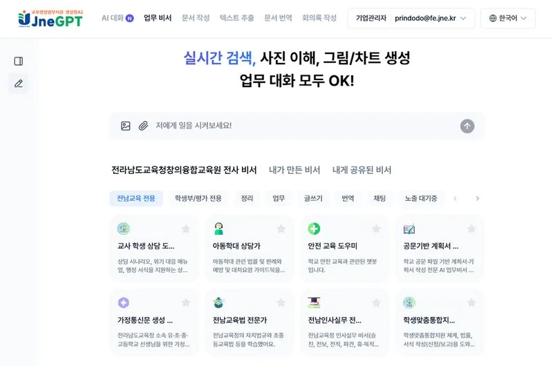 전라남도교육청 창의융합교육원은 교직원들의 업무 경감과 학교 현장의 디지털 대전환을 위해 교무행정업무 지원에 특화된 생성형 AI 'JneGPT'를 도입하고 본격적인 시범 운영에 들어간다.