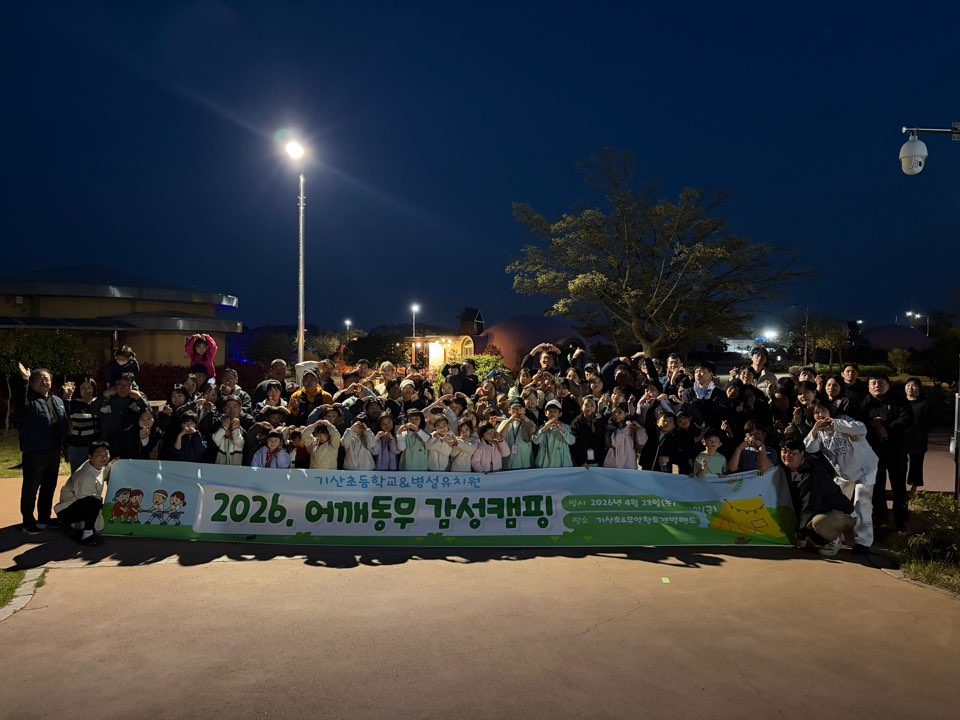 기산초등학교(교장 김용허)는 2026년 4월 23일부터 24일까지 1박 2일간 전교생과 학부모, 교직원이 함께 참여하는 ‘기산교육가족 어깨동무 감성캠핑’을 운영하였다.