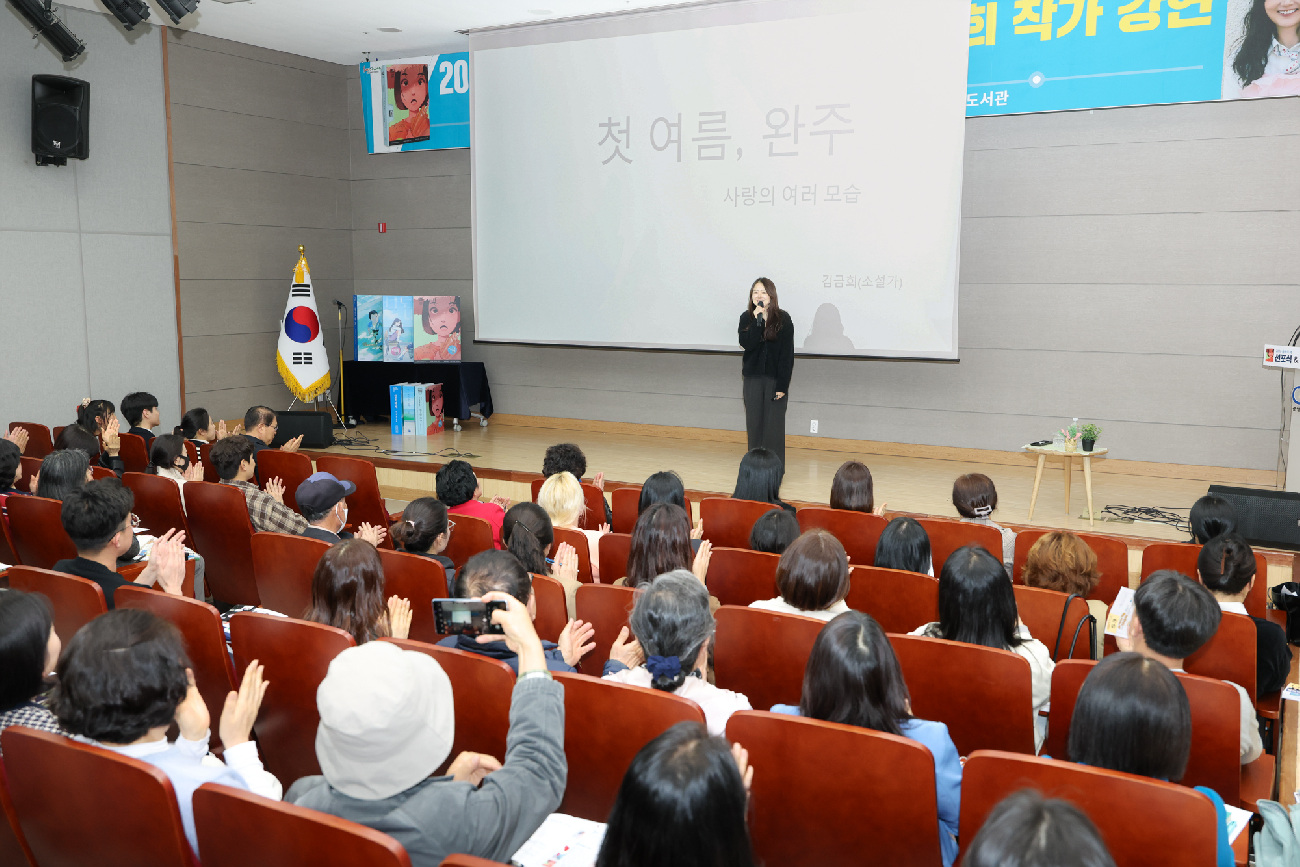 강연 주제는 “첫 여름, 완주 – 사랑의 여러 모습”으로, 등장인물들을 통해 세심한 온정의 세계를 전하며 위로를 전하고, 각기 다른 삶 속에서 피어나는 다양한 사랑의 형태를 되짚어보는 시간을 마련했다.