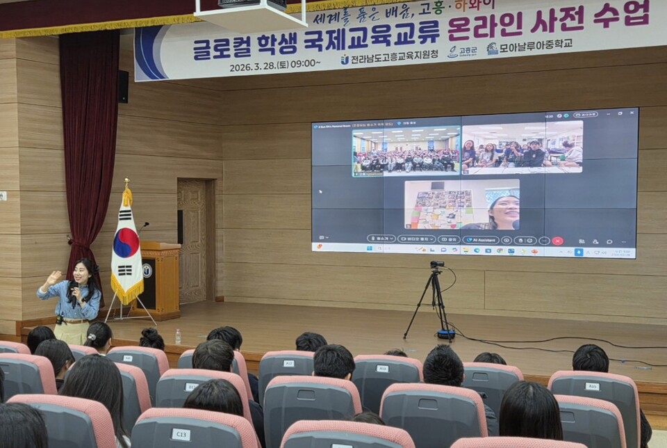 고흥교육지원청(교육장 권형선)은 3월 28일 국제교육교류 프로그램 운영을 위한 ‘사전 온라인 수업’을 운영하였다.
