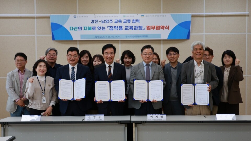 강진교육지원청(교육장 윤영섭)은 4월 28일 강진군 다산박물관에서 경기도구리남양주교육지원청, 다산박물관, (재)경기문화재단실학박물관과 함께 「정약용 교육과정」 운영을 위한 업무협약(MOU)을 체결했다.