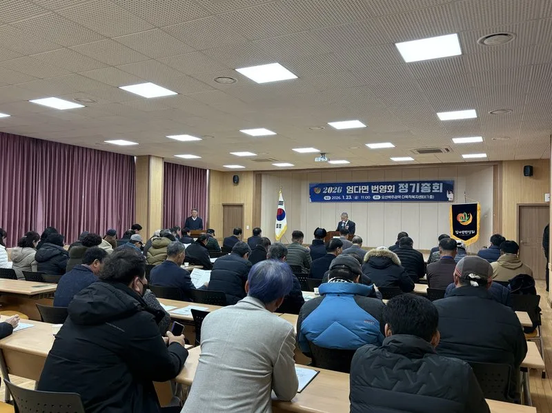 미리보기 사진자료(함평군 엄다면 번영회 2026년 정기 총회 사진).JPG 함평군 엄다면 번영회, 2026년 정기 총회 개최 전남 함평군 엄다면은 “지난 23일 엄다면 번영회가 오선박주권역 다목적복지센터에서 2026년 정기 총회를 실시했다”고 26일 밝혔다.