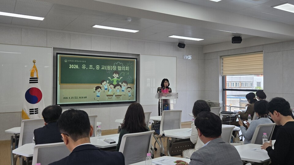 전라남도광양교육지원청은 4월 27일 광양동초등학교 교원배움터에서 유·초·중·특수학교 교(원)장을 대상으로 ‘2026.