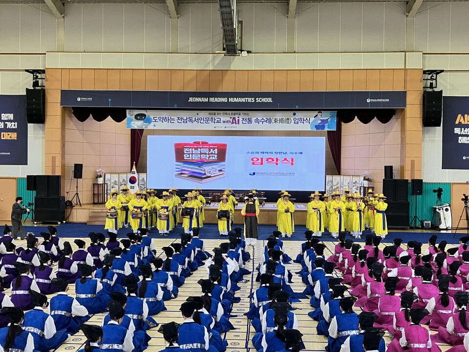 전라남도교육청학생교육원(원장 김창근)은 4월 2일(목) 해남에 위치한 학생교육원 두륜관에서 「도약하는 전남독서인문학교 with AI」 입학식을 성황리에 개최했다고 밝혔다.