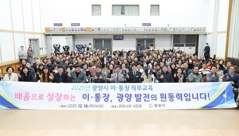 광양시는 지난 18일 시청 시민홀에서 12개 읍·면·동 이·통장 200여 명을 대상으로 2025년 이·통장 직무교육을 실시했다. 이번 교육은 행정의 최일선에서 주민과 행정을 잇는 가교 역할을 수행하는 이·통장의 직무 이해도를 높이고 실무 역량을 강화하기 위해 마련됐다. 초빙된 전문 강사는 시 관계자는 “이·통장은 시민과 행정을 잇는 중요한 가교이자 시정의 든든한 파트너”라며 “지역발전과 주민화합을 위해 헌신하고 계신 이·통장 여러분께 감사드린다”고 말했다. 이어 “앞으로도 이·통장의 역량 강화를 위한 교육과 소통의 자리를 지속적으로 마련하고, 현장의 목소리를 시정에 충실히 반영해 나가겠다”고 밝혔다.