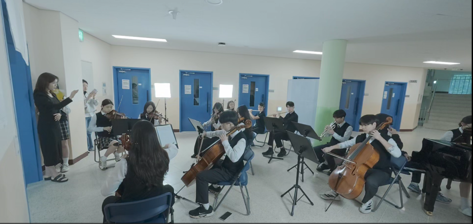 바이올린, 비올라, 첼로, 플루트, 트럼펫, 피아노 등 다양한 악기 전공 학생들이 참여해 조화로운 하모니를 만들어냈고, 음악과 김O인 선생님의 지도 아래 완성도 높은 무대를 선보였다.