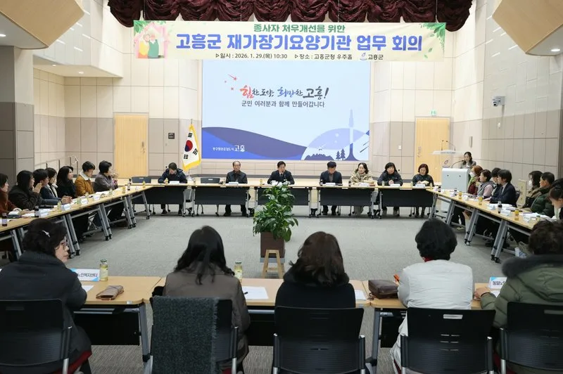 이를 위해 군은 지난 1월 29일 고흥군청 우주홀에서 관내 재가장기요양기관 대표 및 시설 관계자 등 41명이 참석한 가운데 ‘재가장기요양기관 업무 회의’를 갖고, 처우개선수당의 세부 내용과 추진 방향을 공유하며 현장의 다양한 의견을 수렴했다.