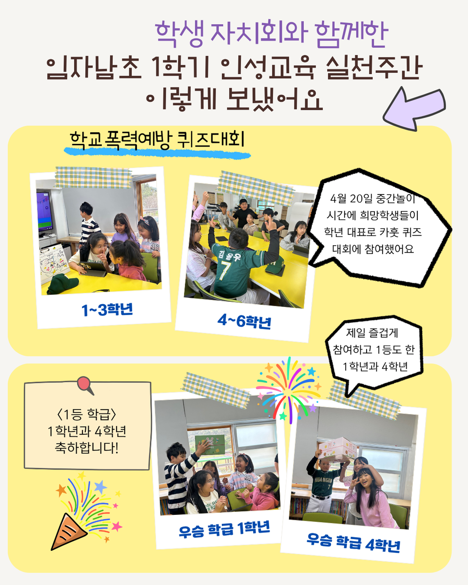 ‘임자남초등학교(교장 남경남)가 지난 4월 13일부터 2주간 전교생을 대상으로 2026학년도 1학기 인성교육 실천주간’을 운영해 학생 주도 참여형 인성교육 활동을 집중 추진했다.