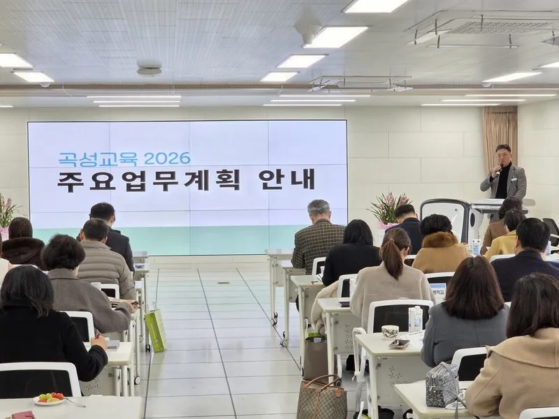 전라남도 곡성교육지원청은 1월 15일(목), 곡성교육지원청 대회의실에서 관내 유·초·중·고등학교를 대상으로 곡성교육 아고라 실천과제 실행전략 협의회를 개최하였다. 1부에서는 2026년 곡성교육 주요업무계획 발표를 중심으로, 곡성교육의 새로운 비전인 ‘교육으로 하나되는 곡성, 세계를 품는 곡성-I(아이)’ 실천을 다짐했다.