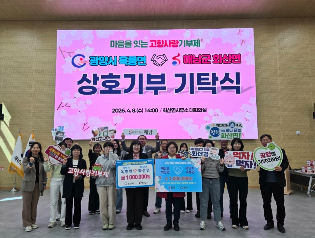 광양시 옥룡면과 해남군 화산면이 고향사랑기부제 상호기부를 통해 지역 간 협력과 교류를 강화했다.