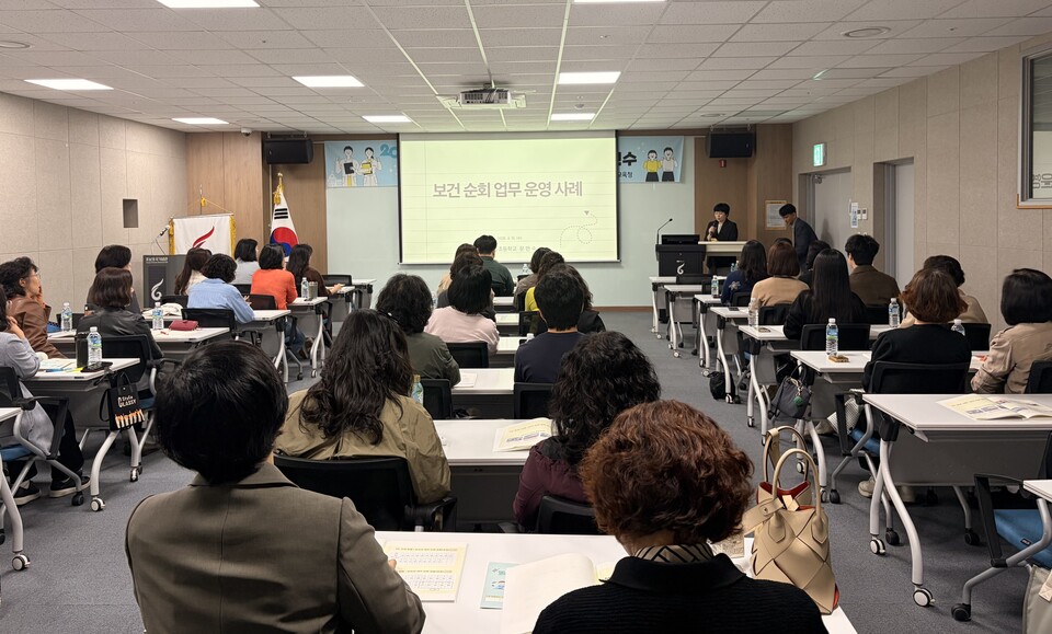 연수에서는 ▲ 보건 순회 업무 운영 사례 ▲ 학교 보건실 운영 방안 ▲ 감염병 대응 및 관리 방안 등 실제 학교 현장에서 요구되는 내용이 다뤄졌다.